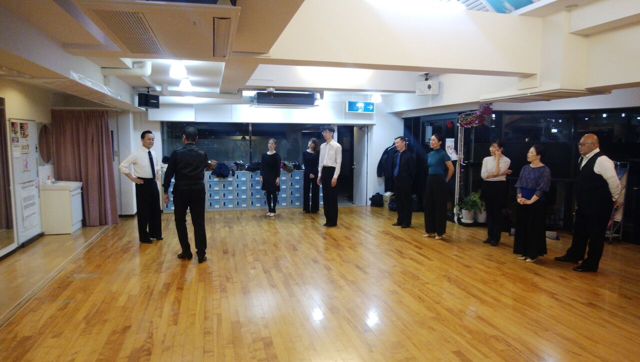 最後田中先生は、トークショーから海宝先生のレクチャーをも取り込み、海宝先生を男性役にしてスローの考え方踊り方を実際に踊り見せてくれる。